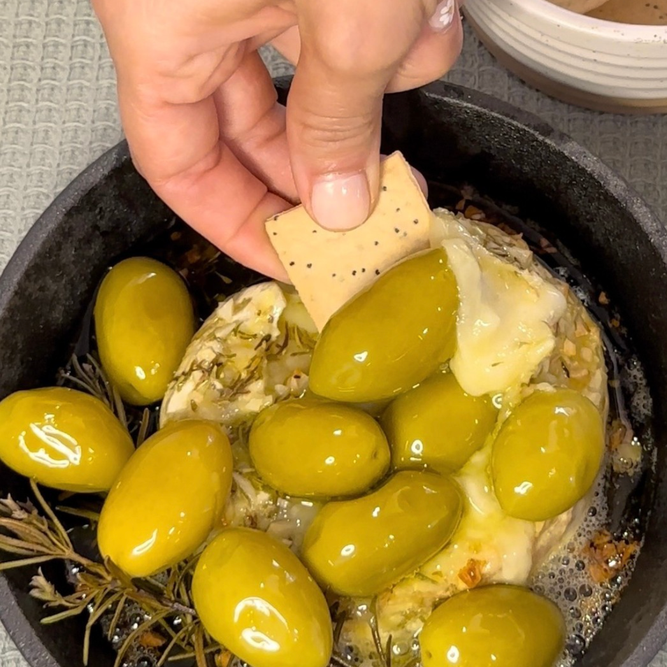 Pour Truffle Olives over any soft cheese and pop them in the oven for 5-10mins. Don't forget to pour the leftover truffle oil from your olive packs all over the baked cheese. (PS works a treat with the whole infused olive range!)