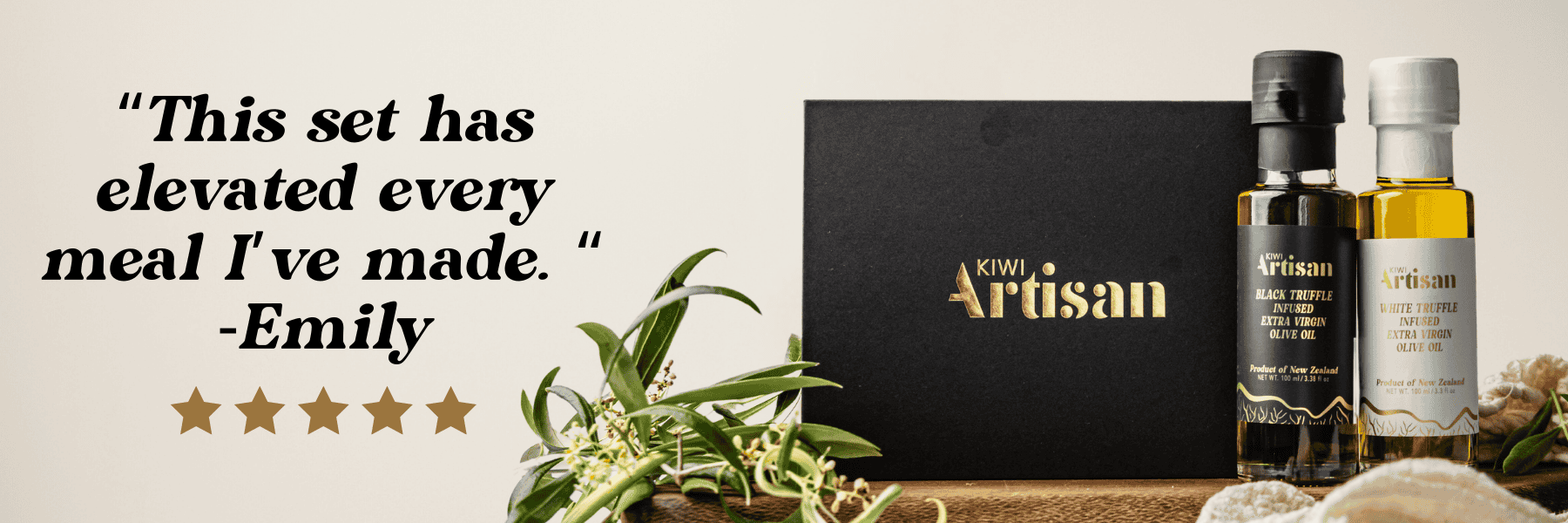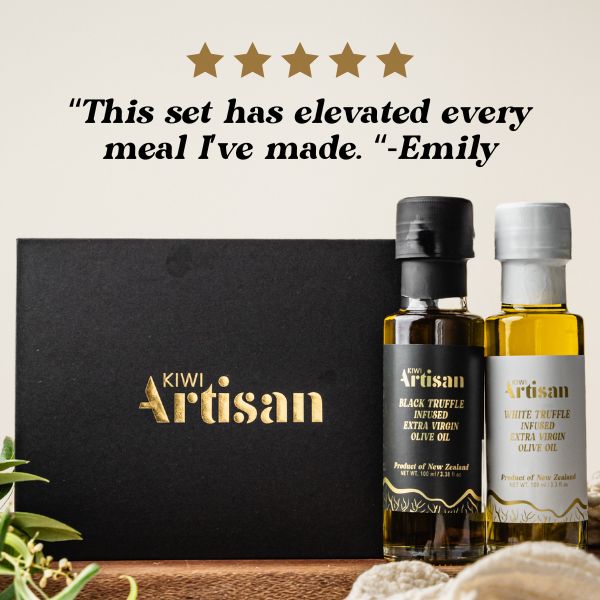 Take your cooking to the next level with our Twin Truffle Oil Gift Box, made with real New Zealand-grown black Périgord truffles and premium extra virgin olive oil.